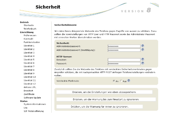 | Weboberfläche | Öffnen Sie die Weboberfläche des Telefons |